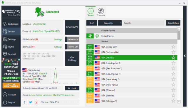 流量经过加密,放心使用。他们提供 Open加速器、Socks/HTTP 代理和 SSH-隧道选项。还可以支持一个账号在多个终端上运行。